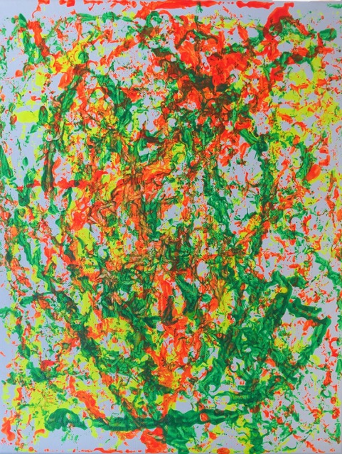 Neon green, orange, yellow, and red collide in a vibrant, almost chaotic dance of color. Each ball carved its own direction, creating a work that’s both spontaneous and deeply intentional in how it invites freedom over form..